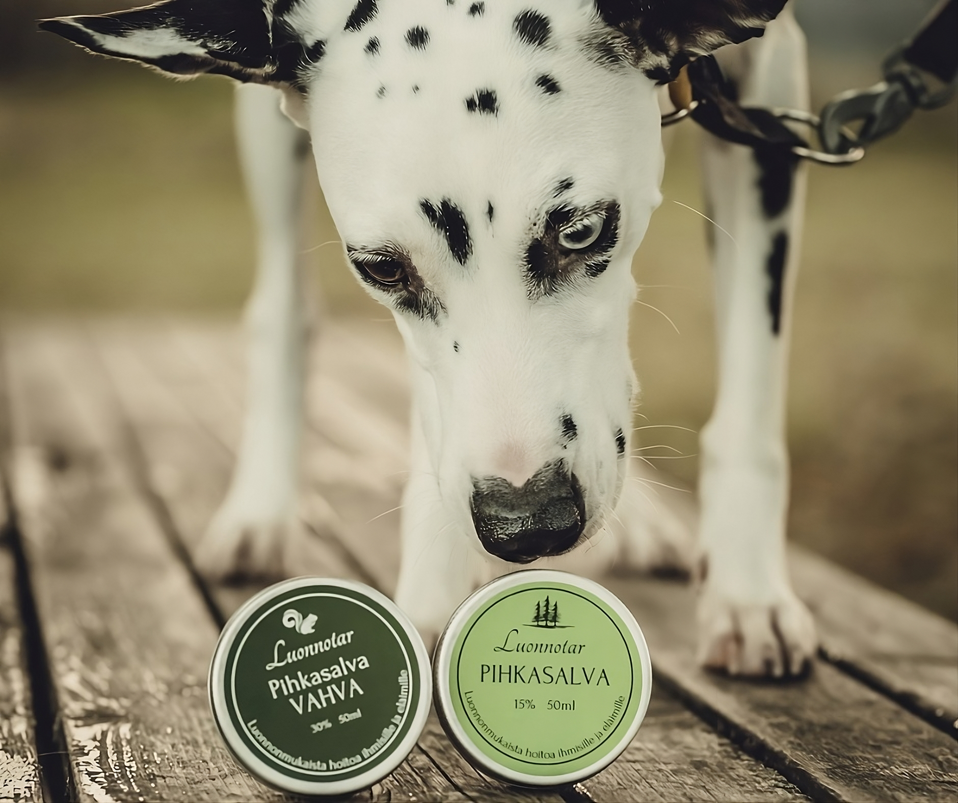 Luonnontuotteiden tehoon on onneksi alettu heräämään eläinlääkäreiden keskuudessa ja moni eläinlääkäri käyttääkin nykyään pihkaa monipuolisesti erityisesti antibioottien sijasta. Ihmispuolellahan pihkaa on käytetty jo pitkään ja monet sairaalat käyttävät pihkaa mm. vaikeiden leikkaus- ja makuuhaavojen hoidossa. Nykyisin onkin koirille saatavana useita pihkaa sisältäviä tuotteita. Luonnotar Pihkasalva tarjoaa vaihtoehdon joka on 100% luonnonmukainen, puhtaista ja korkeatasoista raaka-aineista valmistettu, turvallinen, hellävarainen ja tehokas. Huolella valittu ja korkeatasoinen salvapohjamme on täynnä ihoa rauhoittavia ja uudistavia ainesosia.